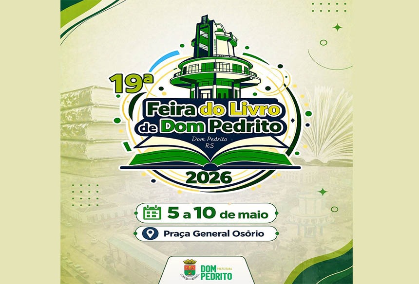 A 19ª Feira do Livro de Dom Pedrito acontece de 5 a 10 de maio na Praça General Osório, com entrada gratuita e programação que inclui shows, peças de teatro, palestras, oficinas, lançamentos de livros e atividades infantis.