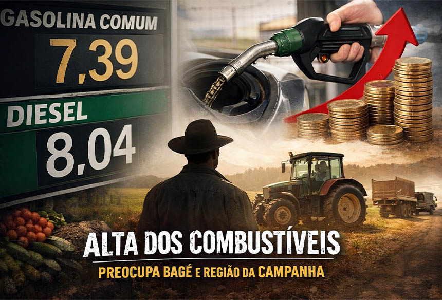 O aumento no preço dos combustíveis tem preocupado motoristas e produtores rurais em Bagé e região da Campanha. Em alguns postos do município, o litro da gasolina comum já ultrapassa R$ 7,30, chegando a cerca de R$ 7,39, conforme levantamento divulgado pela imprensa estadual.