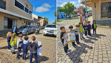 Alunos da EMEI Tupi Silva realizam ação educativa sobre o trânsito em Dom Pedrito