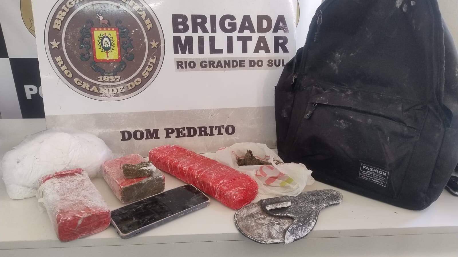 Segundo informações da Brigada Militar, foram encontrados maconha, cocaína e outros objetos com o menor