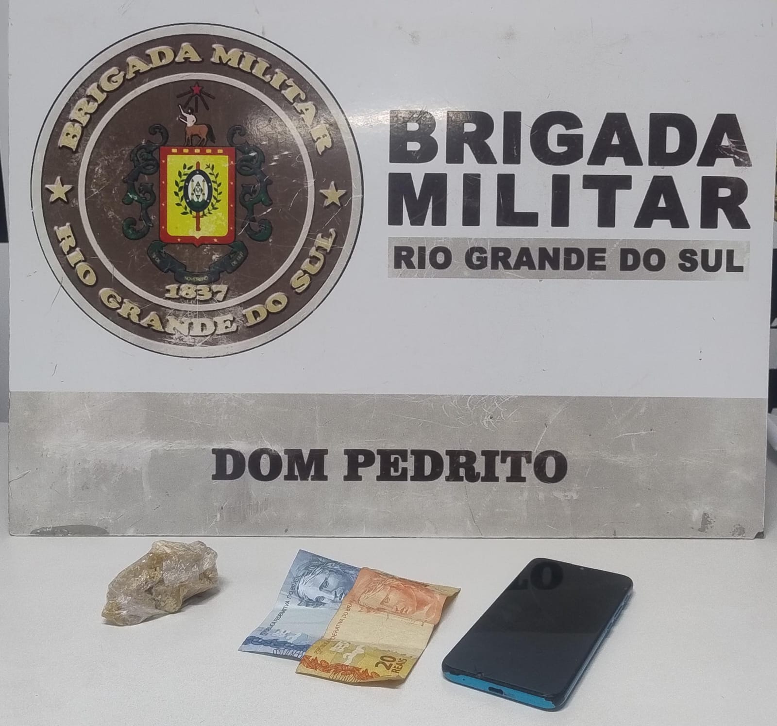 Com eles, foram apreendidas aproximadamente 50 gramas de crack, um celular e R$ 22,00.