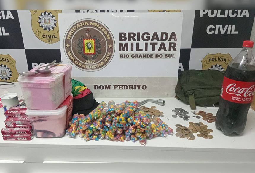 Entre os itens levados pelo indivíduo estavam dois potes de sorvete, pacotes com MM’s, casquinhas de sorvete e quantia em dinheiro