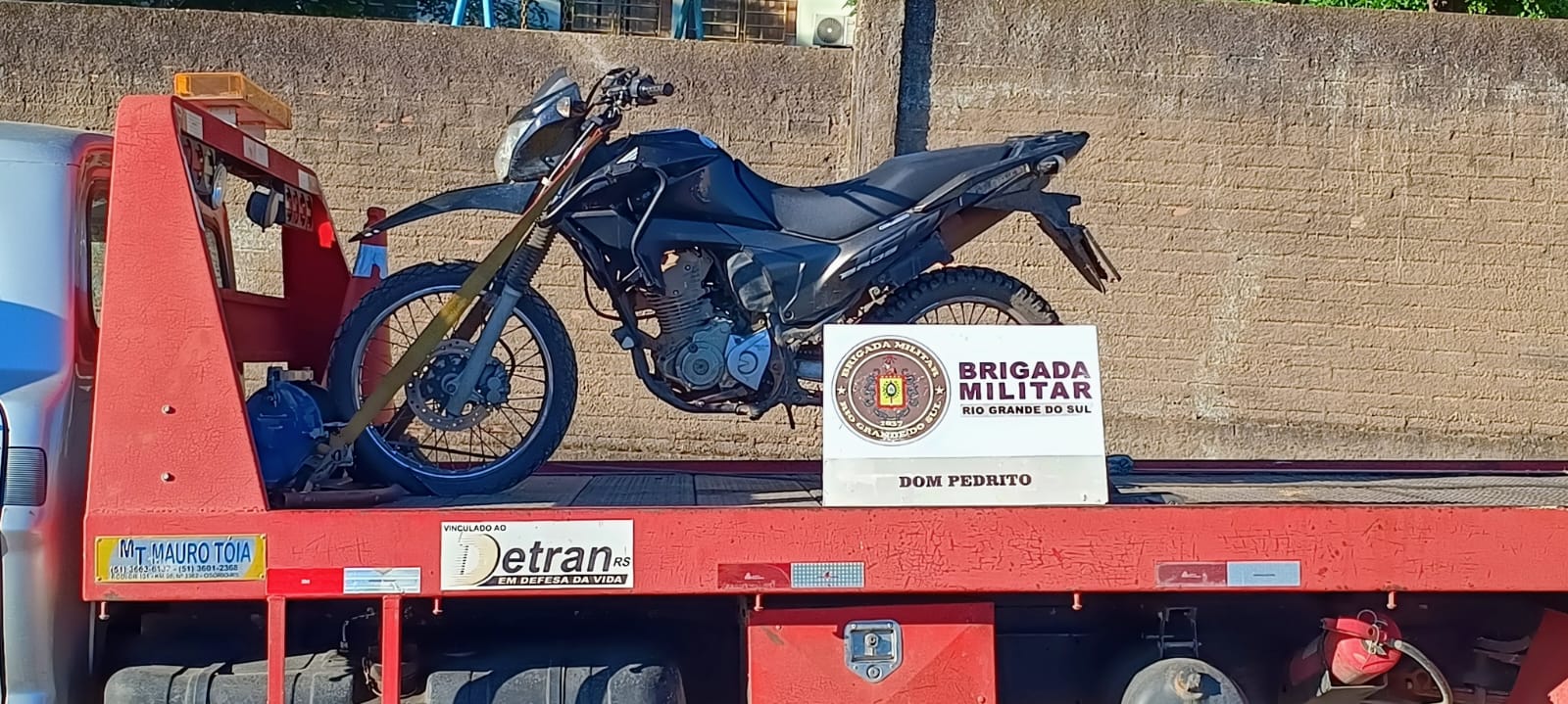 Na tarde desta quarta-feira, 17 de dezembro, uma guarnição da Brigada Militar recuperou uma motocicleta que havia sido furtada no município de Dom Pedrito. A ação ocorreu após informações repassadas pelo setor de inteligência da corporação.