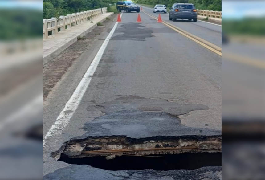 Um buraco de grandes proporções surgiu por volta das 11h de segunda-feira (12) sobre a ponte do Piray, localizada no quilômetro 424 da BR-290, em São Gabriel. O incidente ocorreu no sentido interior-capital, próximo ao trecho urbano do município, e levou à interdição da estrutura para veículos pesados.