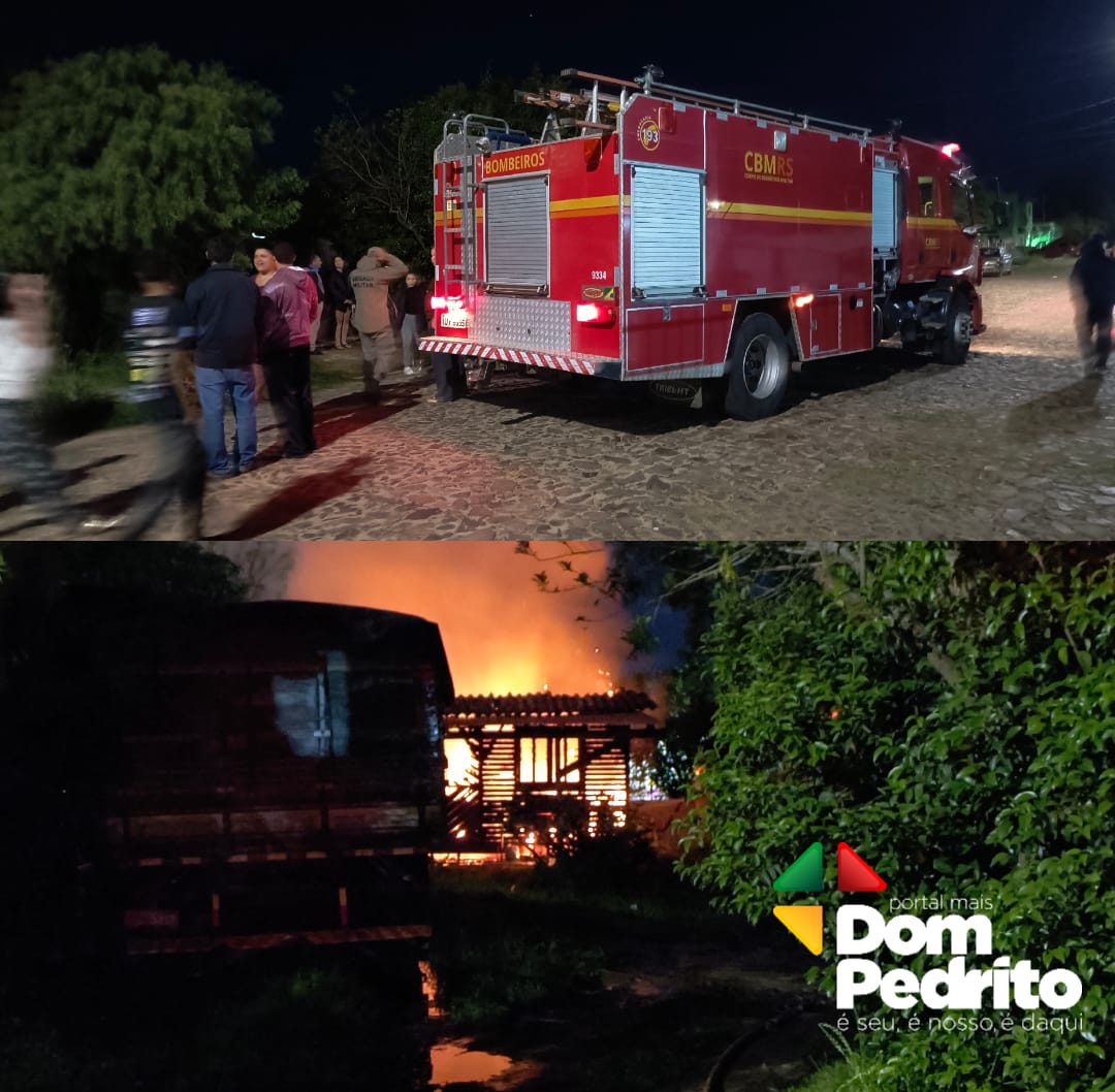 Um incêndio ocorrido por volta das 23h desta segunda-feira (6) destruiu completamente uma residência de madeira no bairro São Gregório, em Dom Pedrito.