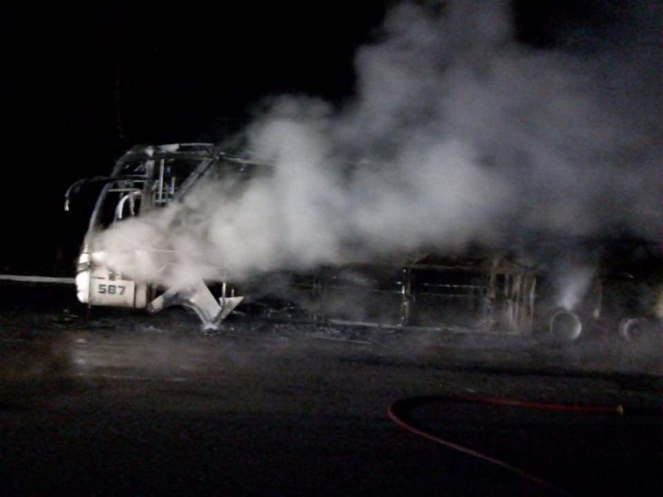 Um ônibus da empresa Ouro e Prata pegou fogo na BR-290, nas proximidades do acesso ao município de Charqueadas na noite desta sexta-feira (15).