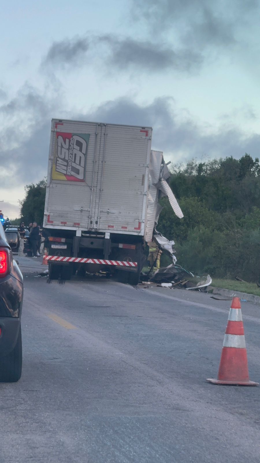 Após as diligências realizadas no decorrer do inquérito, foi possível apurar que a carreta conduzida pelo indiciado invadiu a pista contrária onde passavam, sequencialmente, uma outra carreta, uma viatura da Polícia Rodoviária Federal em serviço de patrulhamento e um caminhão.
