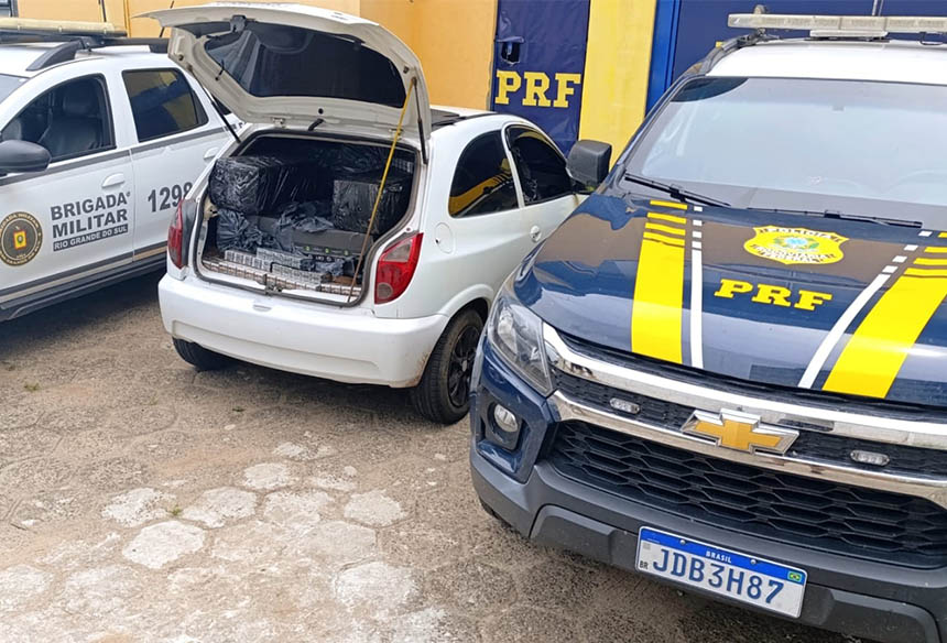 A Polícia Rodoviária Federal, em ação conjunta com a Brigada Militar, apreendeu um veículo carregado com cigarros contrabandeados. A ação ocorreu na manhã desta terça-feira (3), na BR 158 em Santana do Livramento.