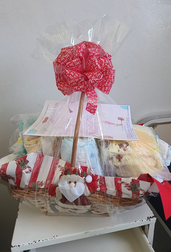 Na cesta, os pais receberam fraldas, uma roupinha completa, um shampoo e até mesmo uma colônia perfumada para a Maria Alice, tudo preparado com muito carinho por uma equipe atenciosa e muito dedicada.