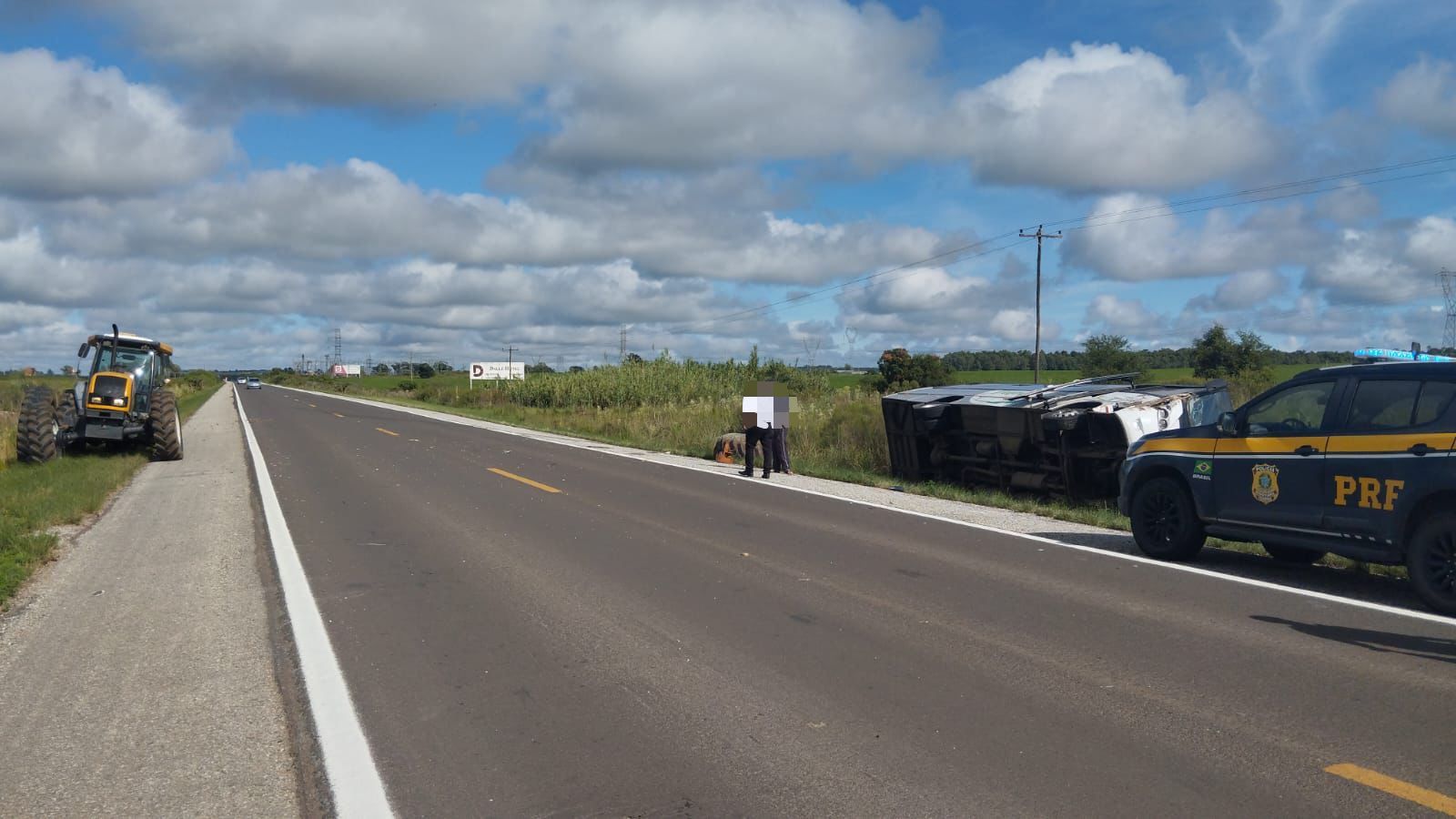 De acordo com as informações iniciais, uma das rodas do trator teria s soltado enquanto o veículo trafegava pela rodovia e acabou atingindo o micro-ônibus. O condutor perdeu o controle da direção, fazendo com que o veículo tombasse fora da pista. Mais tarde a PRF atualizou a informação após constatar que o micro-ônibus foi quem colidiu no trator, arrancando uma de suas rodas. Apesar do susto, não houve feridos, sendo registrados somente prejuízos materiais.