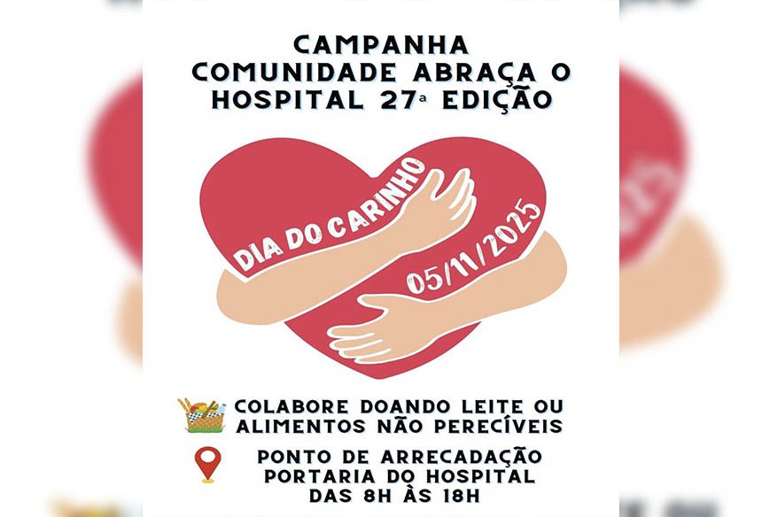 A Santa Casa de Caridade de Dom Pedrito realiza, no dia 5 de novembro, a 27ª edição do Dia do Carinho, campanha tradicional que mobiliza a comunidade local em apoio ao hospital. A ação tem como objetivo a arrecadação de leite e alimentos não perecíveis, que são utilizados na rotina da instituição, especialmente no preparo de refeições destinadas a pacientes.